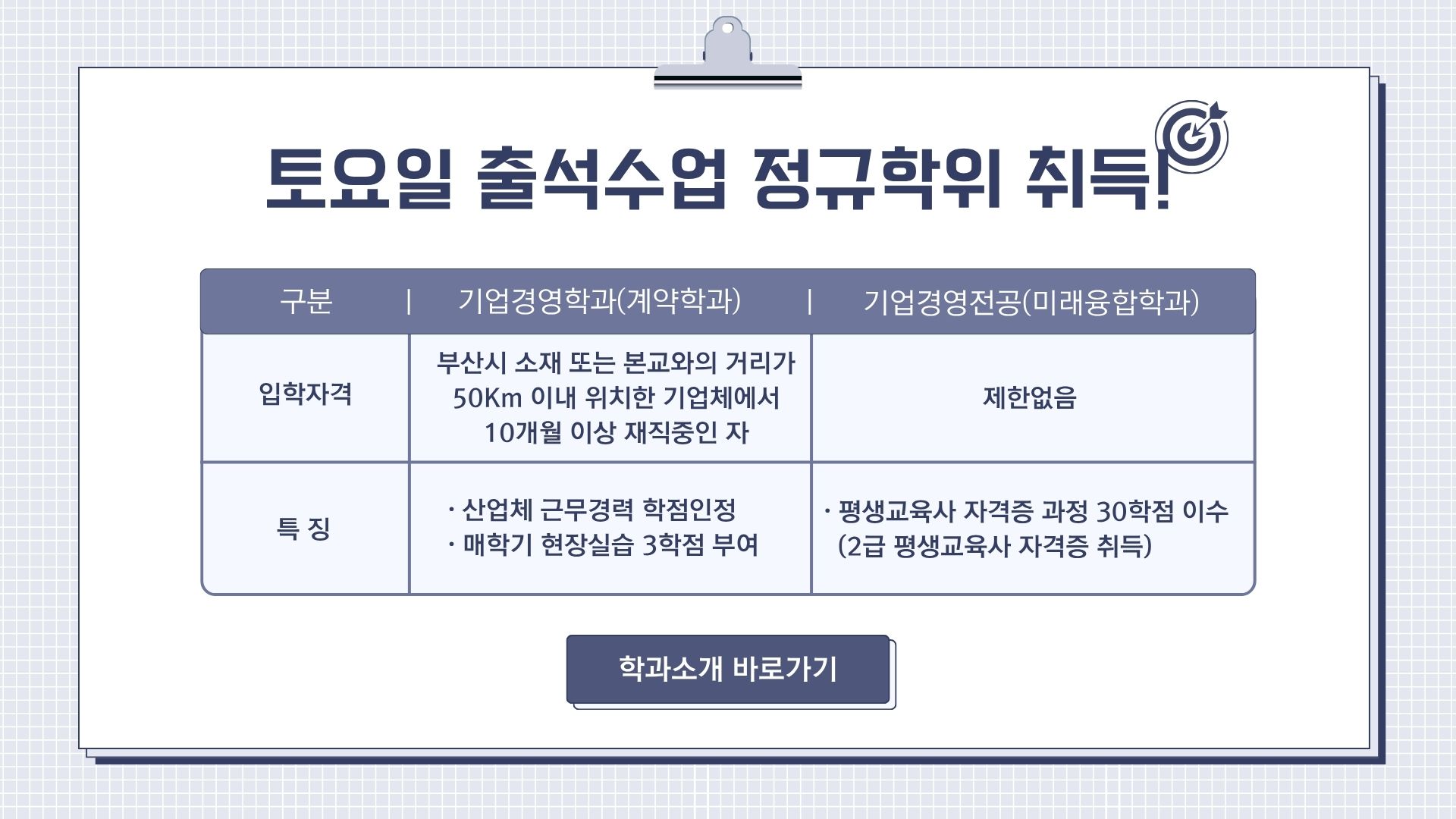 토요일 출석수업 경영학(석)사 정규학위 취득